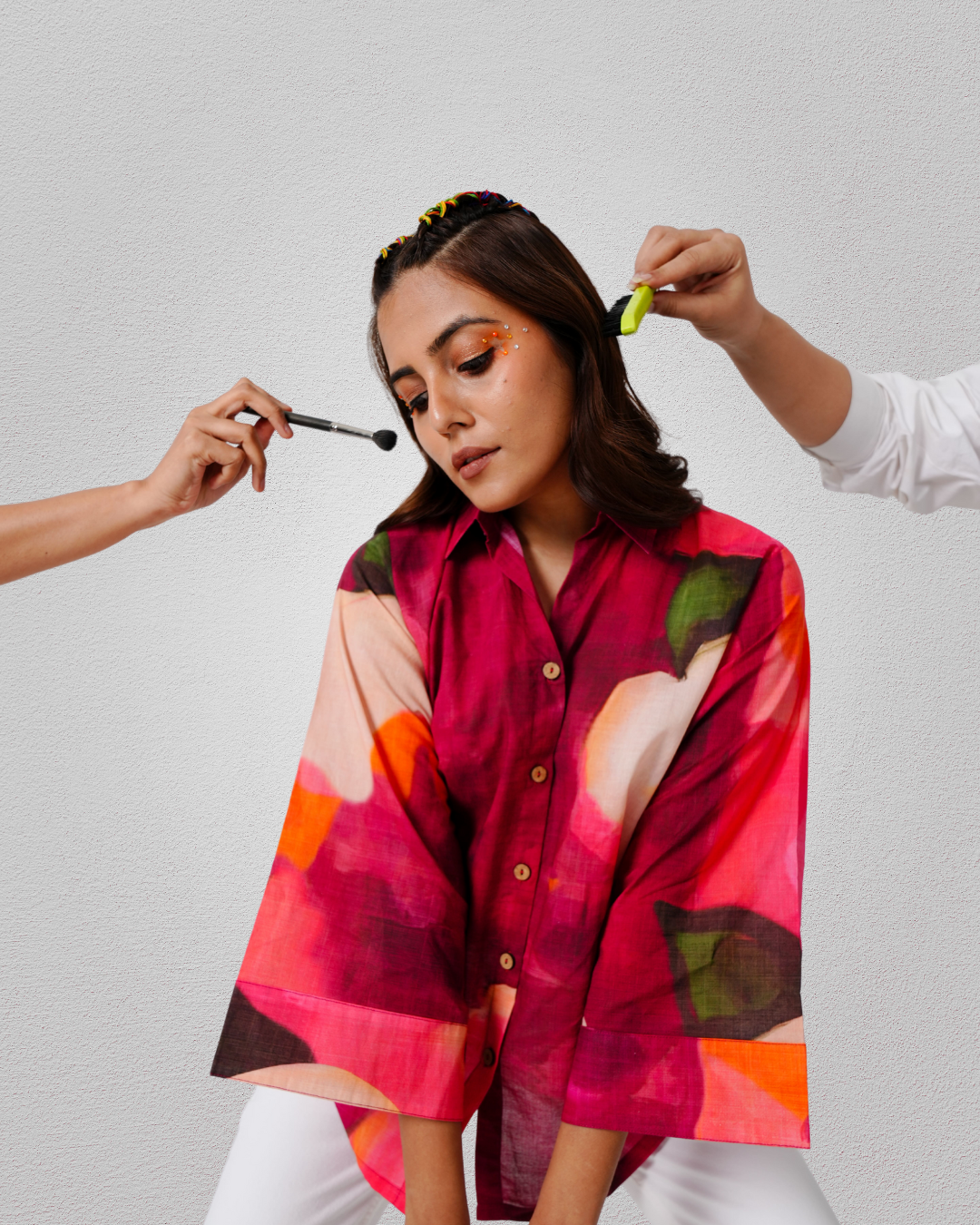 🌻 Cherry Hued Cotton Shirt – Your Go-To for Effortless Style