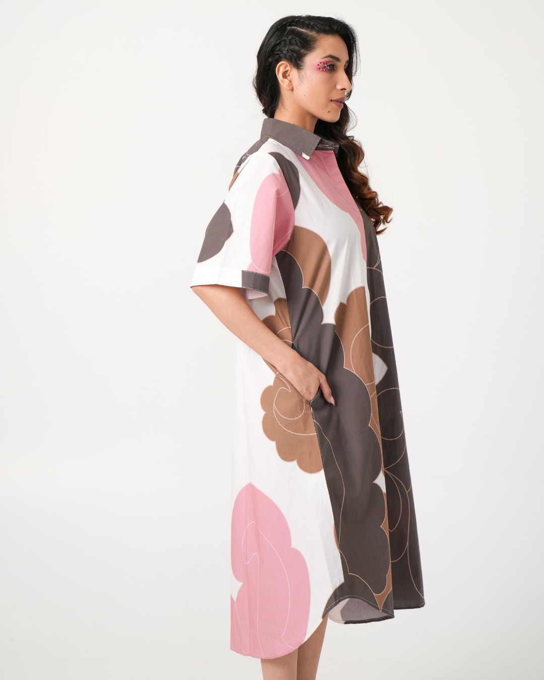 The White Cotton Shirt Dress is a timeless piece that blends classic tailoring with the delicate charm of a floral pattern. Made from a crisp, breathable cotton, this dress offers a clean, polished look while keeping you comfortable all day long. The structured collar and button-down front provide a sophisticated feel, while the relaxed fit and subtle flair of the skirt create a flattering silhouette.